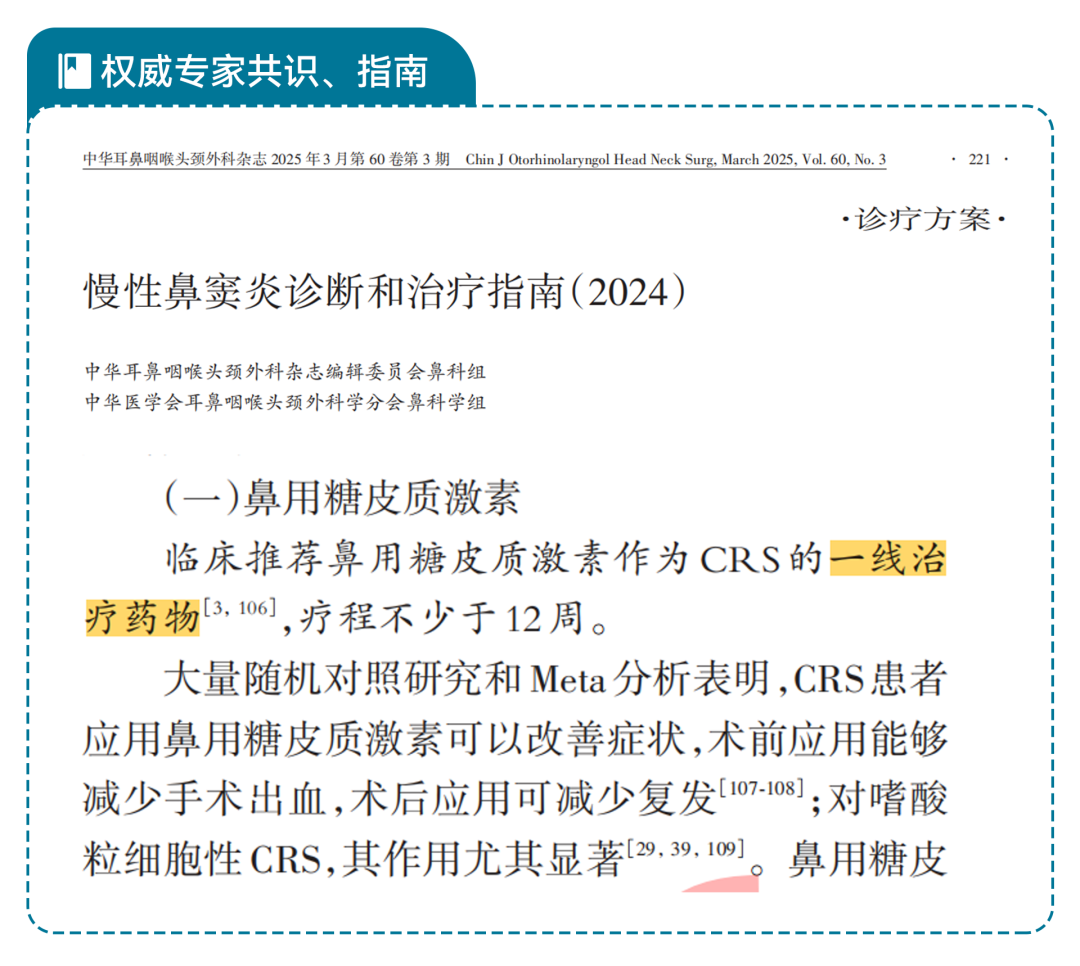 雾化所使用的鼻用糖皮质激素,是慢性鼻窦炎的一线治疗药物。