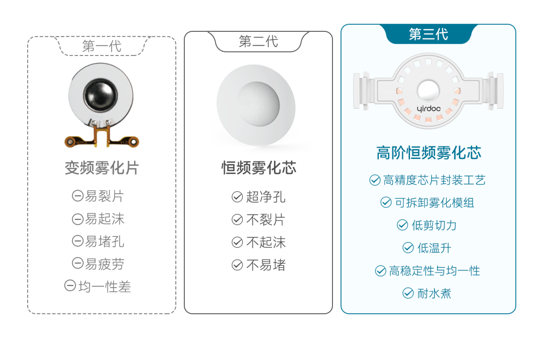 不同制剂有着独特的物理属性,针对不同的粘度、浓度、表面张力等属性,需要不同的雾化片来适配。此外,不同的适应症,其靶向沉积位置也各不相同(例如PAH/IPF需要靶向深肺沉积)。面对这些差异化需求,“通用市售雾化器”在均一性等方面表现不佳,难以实现高性能雾化,无法满足临床阶段高质量要求。因此,欧美学界、工业界和监管部门均推崇“一个配方需要一个定制专属雾化器”原则(“one formulation,one customized nebulizer”)。近年来,这一原则也得到了国内相关企业的认可和实践,成为了业界主流观点。