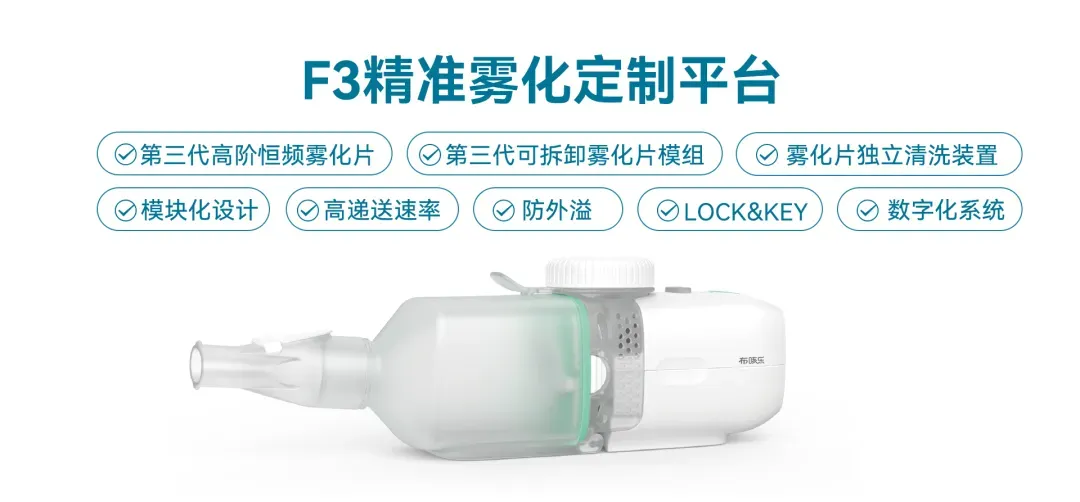 布咳乐F3高递送雾化定制平台,在PARI eFlow等国际平台标准上,全方位实现国产替代和高端雾化产业升级,目前已经助力吸入抗生素、吸入小核酸药物(siRNA、ASO 等)、吸入mRNA-LNP、吸入抗体、吸入外泌体等吸入药械组合产品的定制开发和临床开发。